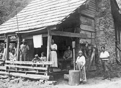 The caption on this one says 'Red Lick, Kentucky' Unless the guy in black is just visiting, there would be six people in this small dwelling.